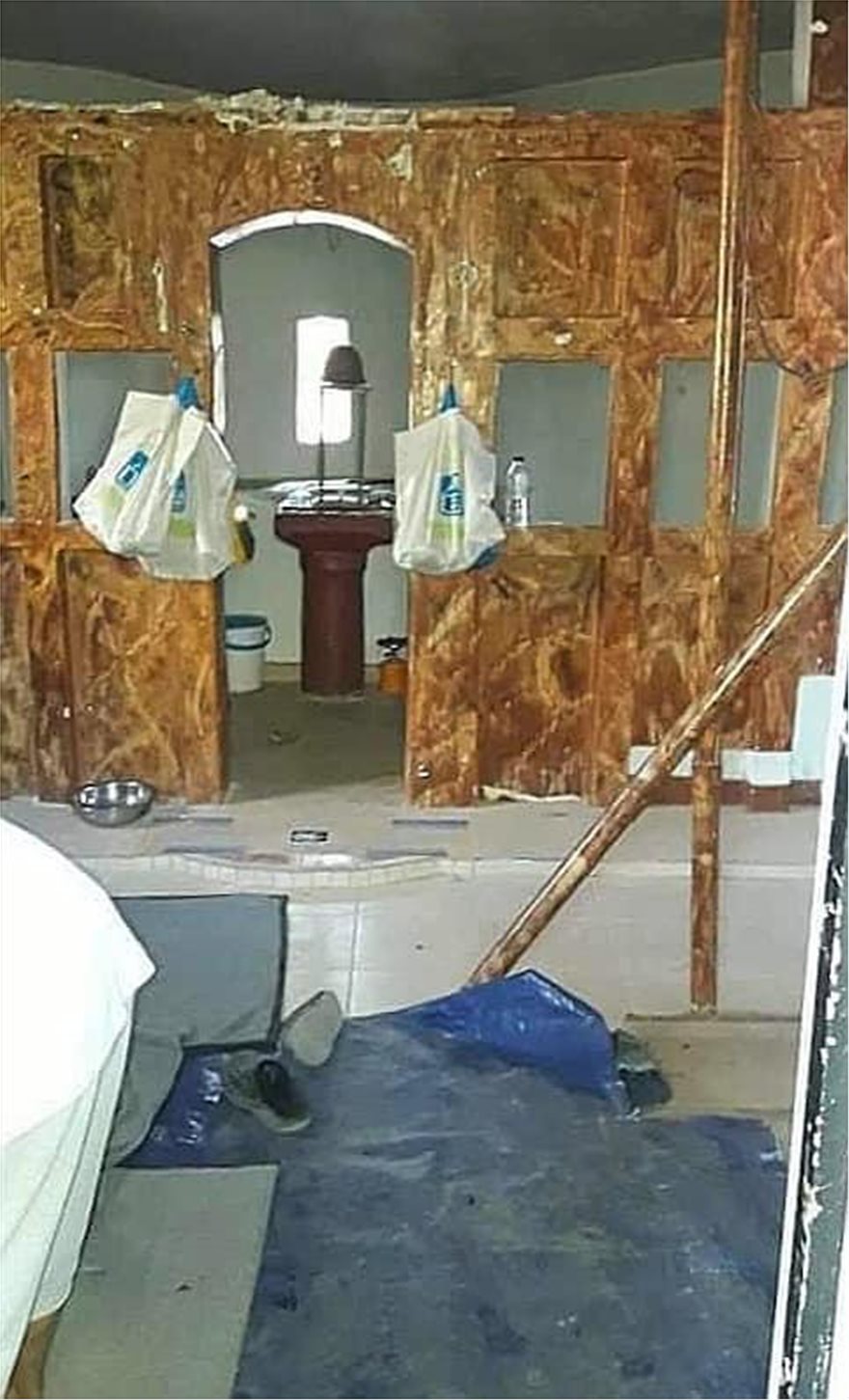 Άδεια μπουκάλια νερού και κάποια στρώματα έχουν μείνει εκεί εκτεθειμένα. Οι αλλοδαποί άφησαν πίσω τους σεντόνια και πολλές σακούλες με σκουπίδια.