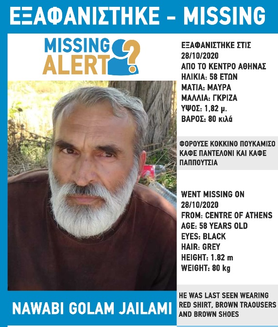 Συναγερμός έχει σημάνει στις αρμόδιες Αρχές, καθώς στις 28/10/2020, εξαφανίστηκε από την περιοχή του κέντρου της Αθήνας, ο Nawabi(επ) Golam Jailami(ον), 58 ετών.