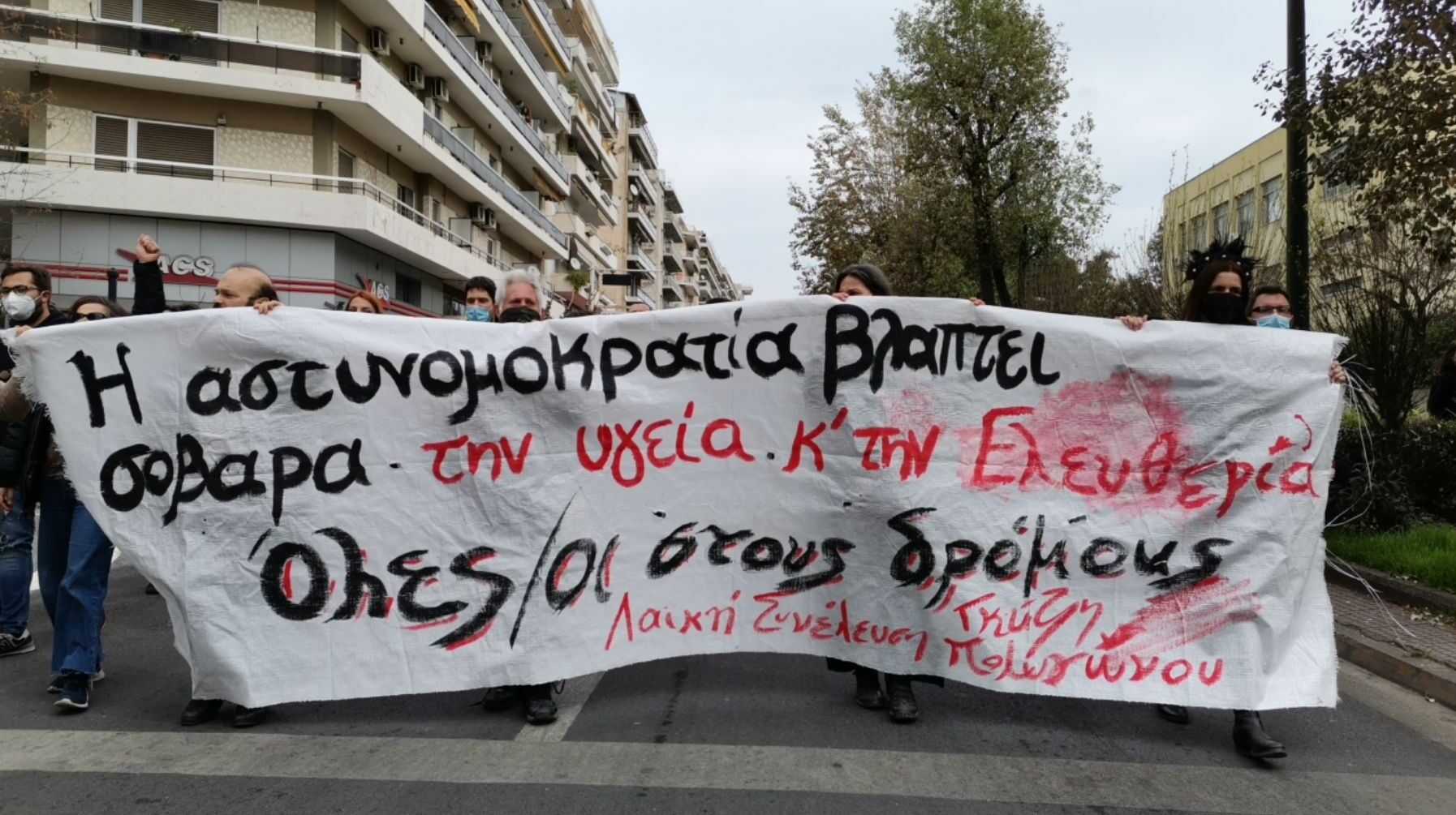 Οι συγκεντρωμένοι πραγματοποίησαν πορεία προς την πλατεία Κυψέλης.
