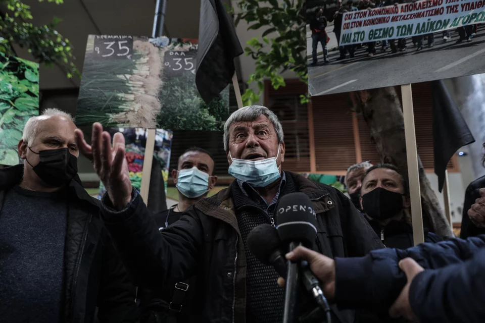 Στην Αθήνα πραγματοποιήθηκε διαμαρτυρία παραγωγών στις λαϊκές αγορές έξω από το υπουργείο Ανάπτυξης, σημείο στο οποίο είχε συγκεντρωθεί πλήθος κόσμου.