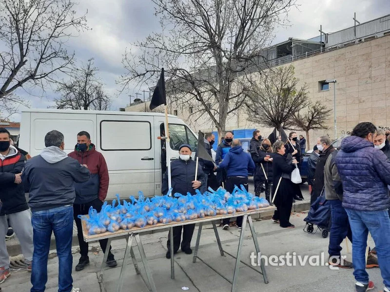 Στη Θεσσαλονίκη επίσης, επαγγελματίες, παραγωγοί και πωλητές συγκεντρώθηκαν μπροστά από το γήπεδο της Τούμπας κρατώντας μαύρες σημαίες. Πραγματοποίησαν καθιστική διαμαρτυρία ως ένδειξη αντίδρασης στο νομοσχέδιο της κυβέρνησης, ενώ μοίρασαν δωρεάν προϊόντα στους καταναλωτές. Στο σημείο βρέθηκε και η αντιπεριφερειάρχης Θεσσαλονίκης, Βούλα Πατουλίδου.