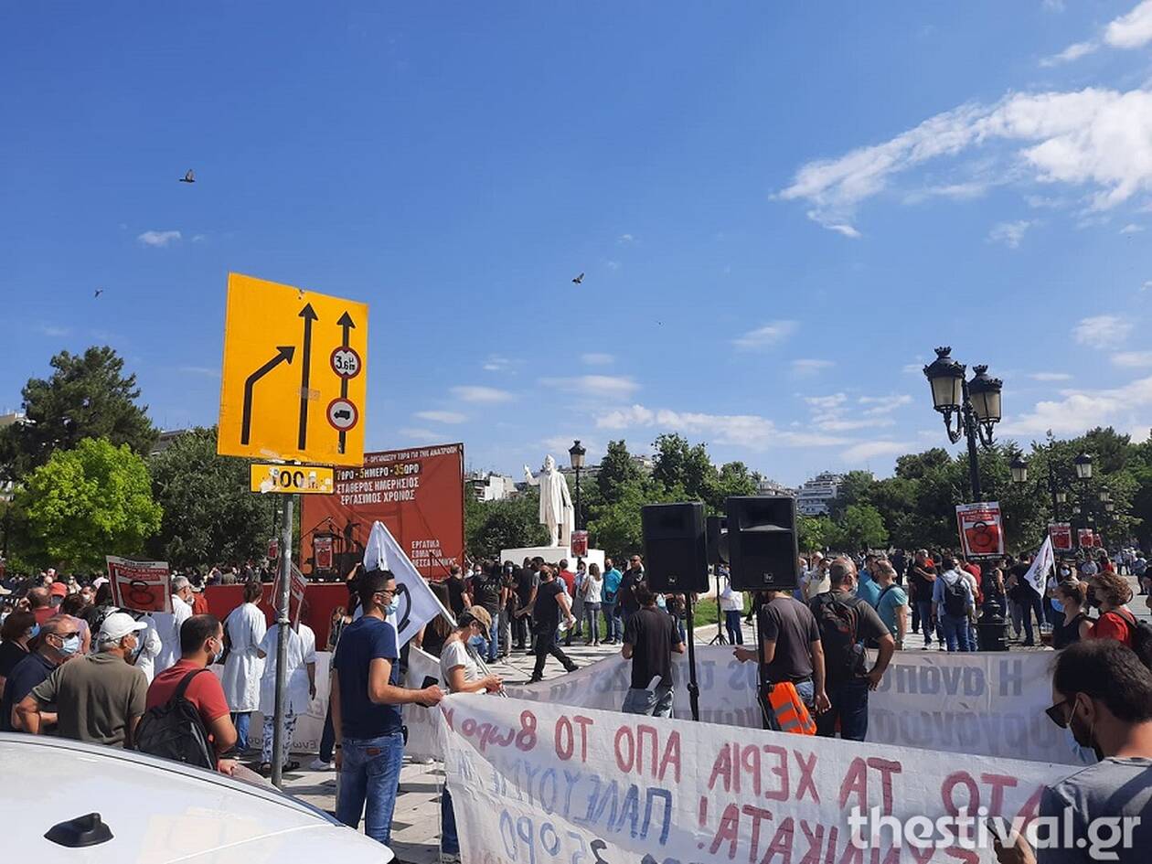 Σε εξέλιξη βρίσκονται αυτή την ώρα οι απεργιακές κινητοποιήσεις ενάντια στο νομοσχέδιο του υπουργείου Εργασίας, στο πλαίσιο της 24ωρης απεργίας που κήρυξαν ΓΣΕΕ και ΑΔΕΔΥ στο κέντρο της Θεσσαλονίκης.