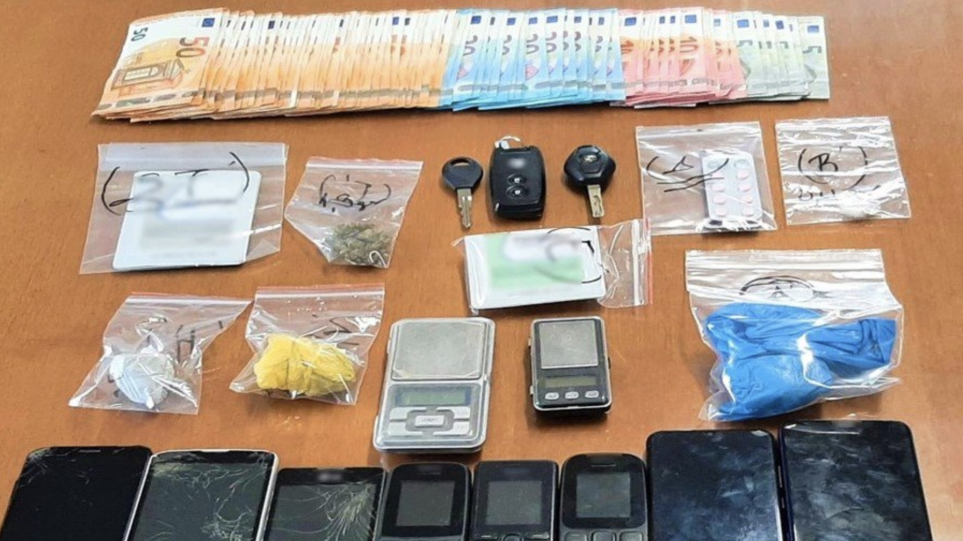– ποσότητες ηρωίνης, συνολικού βάρους 65 γραμμαρίων, ποσότητα κάνναβης, βάρους 1,3 γραμμαρίων, 18 ναρκωτικά δισκία, χωρίς την απαιτούμενη ιατρική συνταγή, 5 διαδερμικά έμπλαστρα με τη δραστική ουσία «φαιντανύλη», δύο ζυγαριές, το χρηματικό ποσό των 3.090 ευρώ και οκτώ κινητά τηλέφωνα.