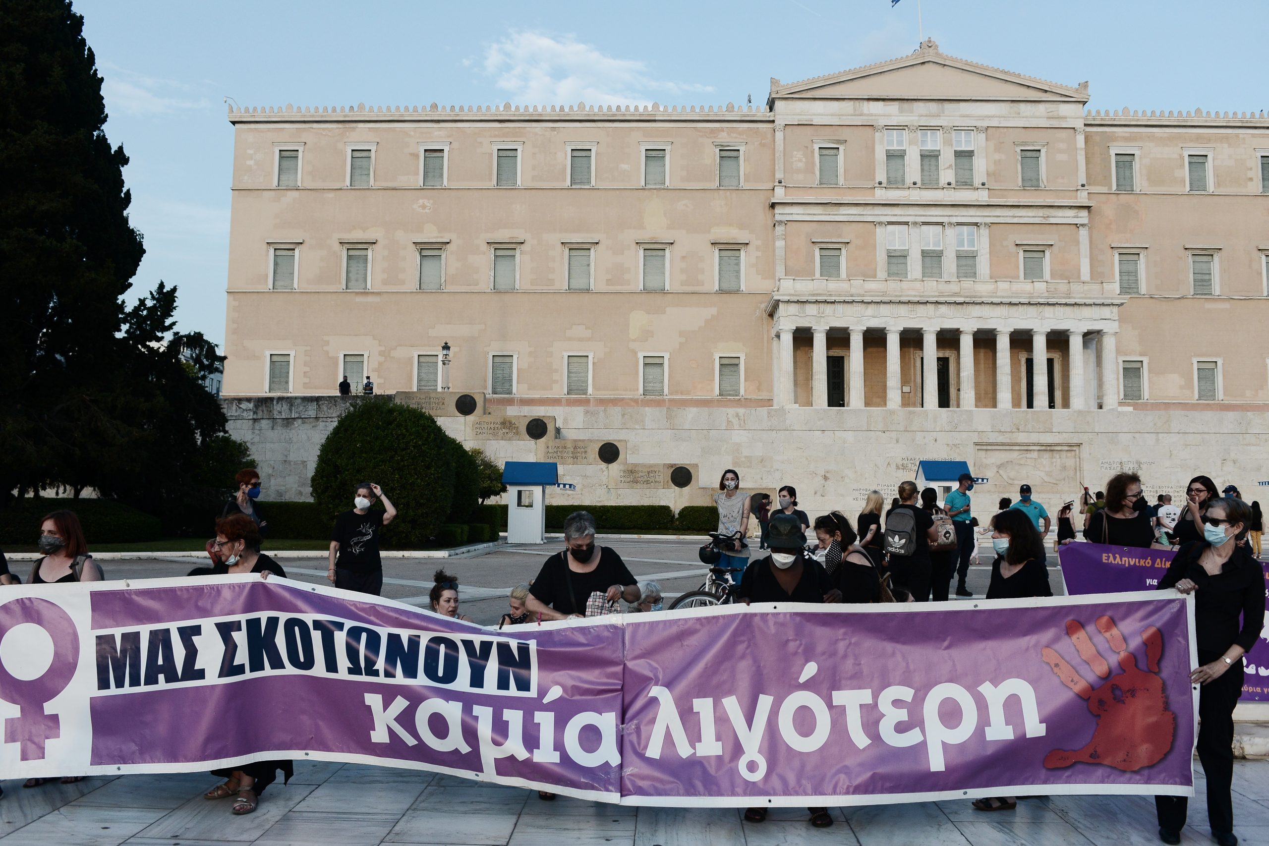 Με συνθήματα όπως, «η πατριαρχεία δολοφονεί» και «οι γυναικοκτόνοι έχουν τα κλειδιά του σπιτιού μας», δεκάδες γυναίκες αλλά και άντρες βρέθηκαν μπροστά από τη Βουλή.