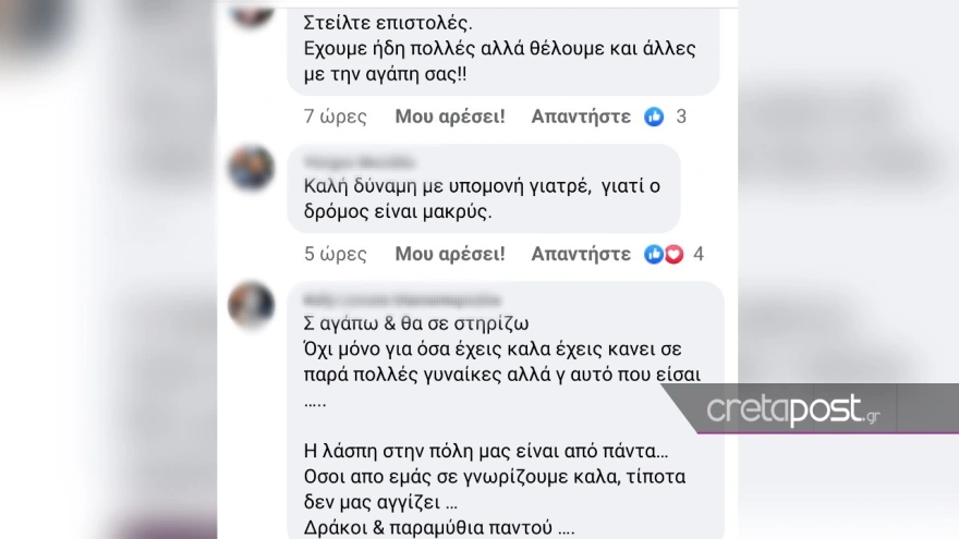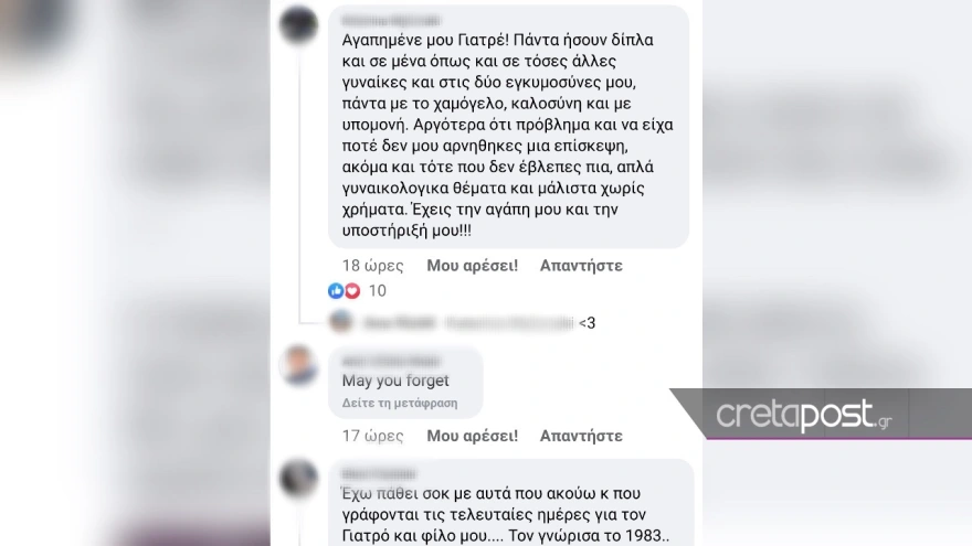 Όπως μεταδίδει το cretapost.gr, ασθενείς συγκεντρώνονται για να προτάξουν τις «θετικές εμπειρίες τους» σε επιστολές. Σύμφωνα με το τοπικό μέσο που ήρθε σε επικοινωνία μαζί τους, αναφέρθηκε πως σχηματίζεται μία πρωτοβουλία συλλέγοντας επιστολές συμπαράστασης τις οποίες έχουν ήδη παραδώσει στον δικηγόρο του γυναικολόγου.
