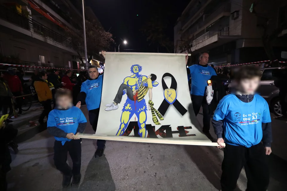 Λίγο πριν την έναρξη της πορείας οι συγκεντρωμένοι φώναξαν συνθήματα στη μνήμη του άτυχου 19χρονου. «Άλκη ζεις και δεν θα ξεχαστείς» και «Άλκης Καμπανός για πάντα Αρειανός» ήταν μερικά από αυτά που ακούστηκαν, ενώ τηρήθηκε ενός λεπτού σιγή.