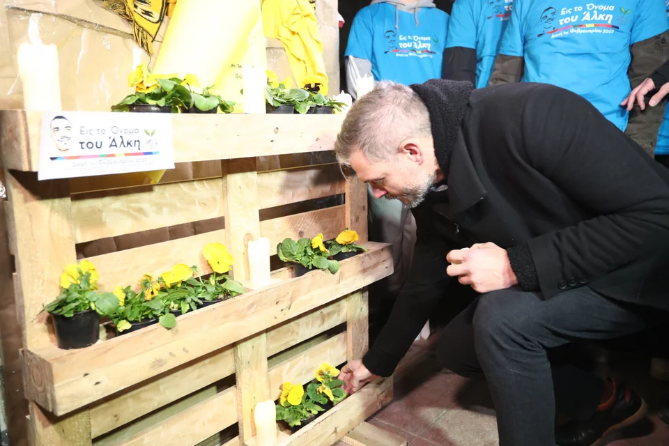 Στο σημείο της δολοφονίας βρέθηκαν ο θείος και η θεία του αδικοχαμένου Άλκη, οι οποίοι δεν μπορούσαν να συγκρατήσουν τα δάκρυά τους, ενώ το συγκεντρωμένο πλήθος πραγματοποιεί πορεία στους δρόμους της Θεσσαλονίκης με κατάληξη τον Λευκό Πύργο.