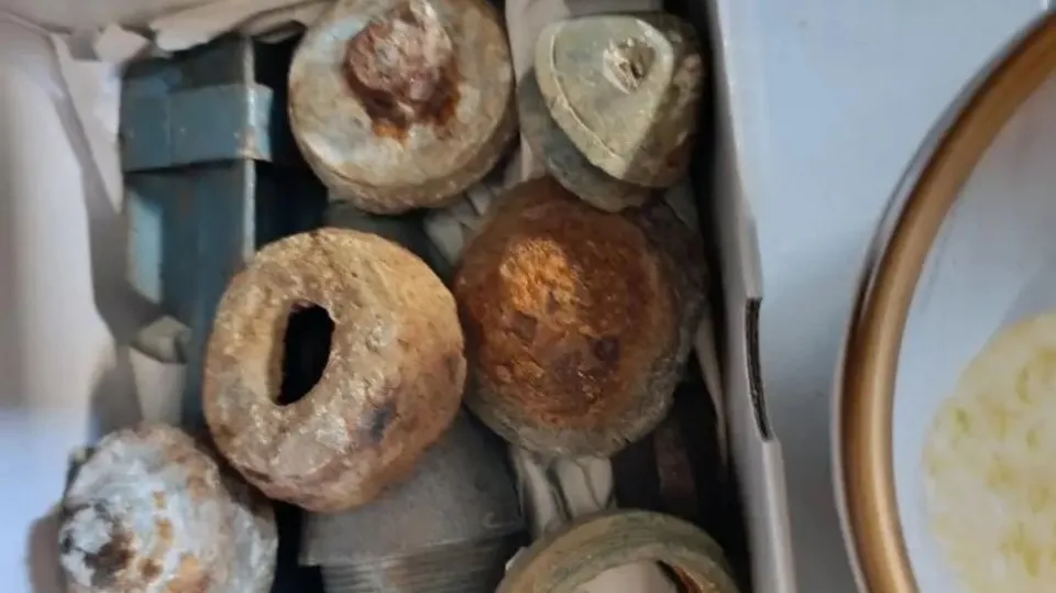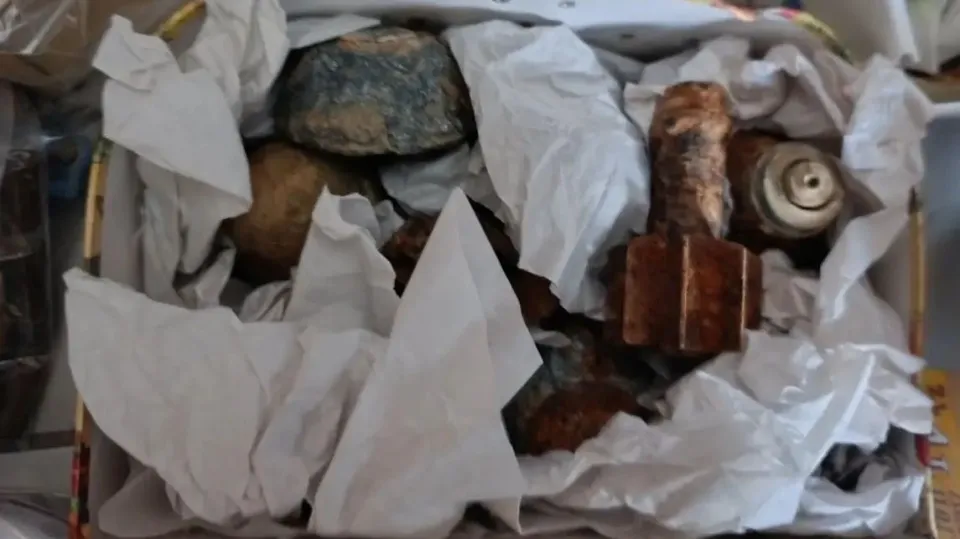 • δέκα κεφαλές από βλήματα όλμου και διάφορα άλλα τμήματα,