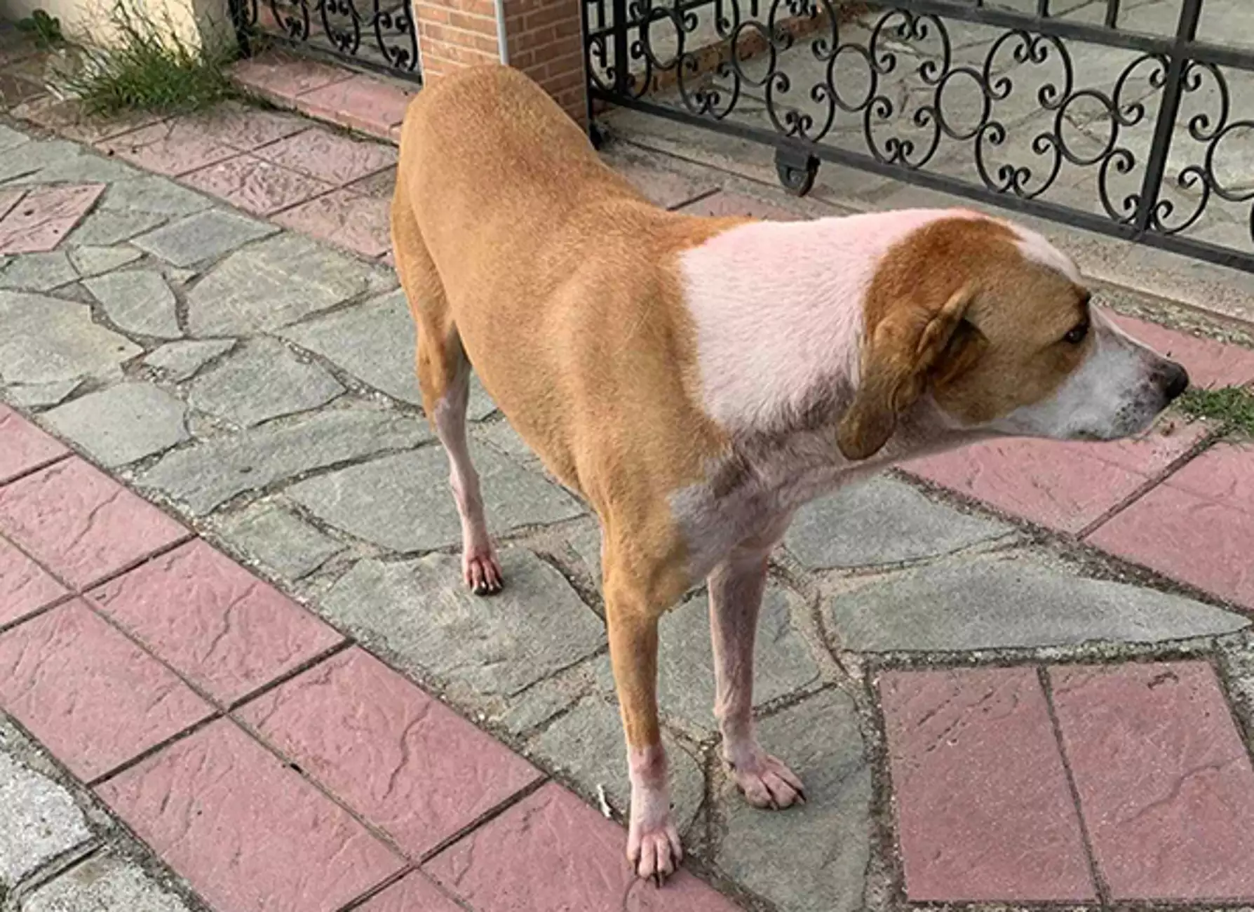 Με ροζ μπογιά, έβαψαν μια αδέσποτη σκυλίτσα στη Νέα Πέραμο στην Καβάλα.