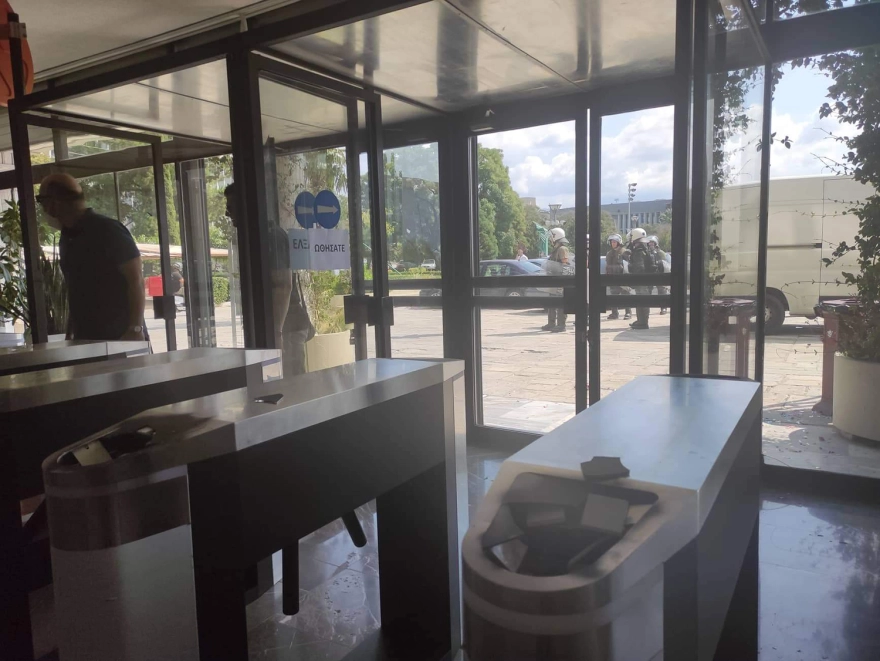 «Σήμερα το πρωί, και ενώ βρισκόταν σε εξέλιξη συγκέντρωση-διαμαρτυρία εκατόν πενήντα (150) περίπου ατόμων σε εξωτερικό χώρο του κτιρίου της Διοίκησης του Αριστοτελείου Πανεπιστημίου Θεσσαλονίκης (Α.Π.Θ), μετά από πρωτοβουλία φοιτητικών συλλόγων και αυτόνομων σχημάτων, περί τις 13.05, ομάδα εκ των συγκεντρωθέντων εισήλθε αιφνιδίως στο κεντρικό κτίριο Διοίκησης, προκαλώντας φθορές σε συνολικά επτά μηχανήματα ελεγχόμενης εισόδου.