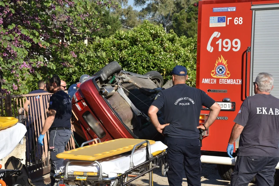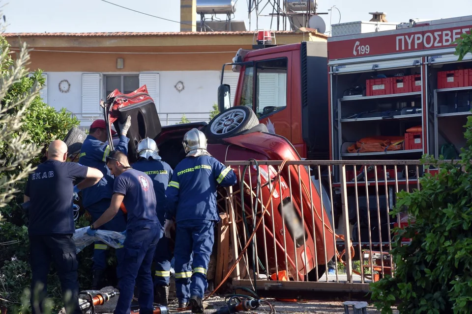Στο αυτοκίνητο επέβαινε ένα ζευγάρι, με την γυναίκα να καταφέρνει και να βγαίνει από το όχημα και τον άνδρα να εγκλωβίζεται σε αυτό.