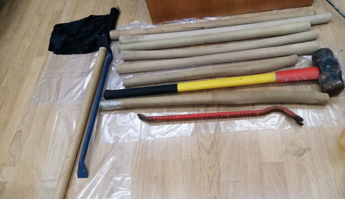 Βρέθηκαν μεταξύ άλλων και κατασχέθηκαν οκτώ βόμβες μολότοφ και 17 αυτοσχέδιοι εκρηκτικοί μηχανισμοί.