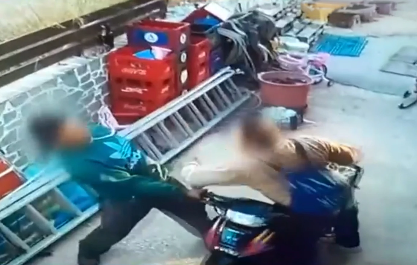Σύμφωνα με όσα φαίνονται, ο ανήλικος γιος πηγαίνει να ανέβει σε μηχανή, όταν δέχεται επίθεση από τον πατέρα του. Ο άνδρας προσπαθεί να χτυπήσει τον ανήλικο που αποφεύγει τα χτυπήματα και στη συνέχεια ρίχνει τη μηχανή πάνω του.