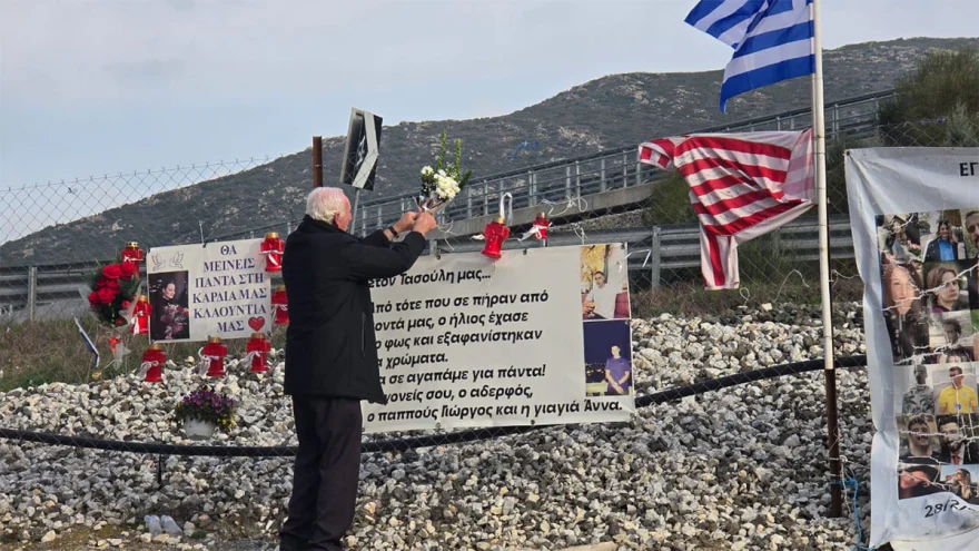 Συγγενείς των θυμάτων του εγκλήματος στα Τέμπη βρέθηκαν στο σημείο της τραγωδίας για να αφήσουν λουλούδια στη μνήμη τους.