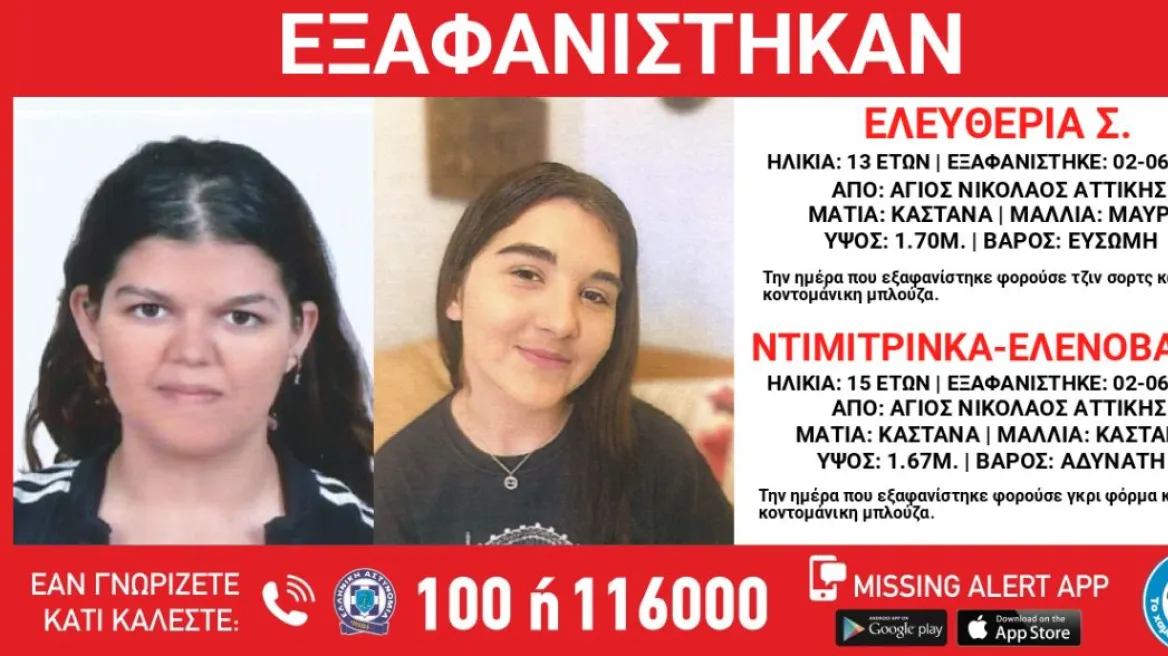 Η 13χρονη και η 15χρονη είχαν εξαφανιστεί περιπού ένα 24ωρο πριν τον εντοπισμό τους από την περιοχή του Αγίου Νικολάου Αττικής καθώς δεν επέστρεψαν στην Παιδόπολη στη Νέα Σμύρνη όπου διέμεναν.
