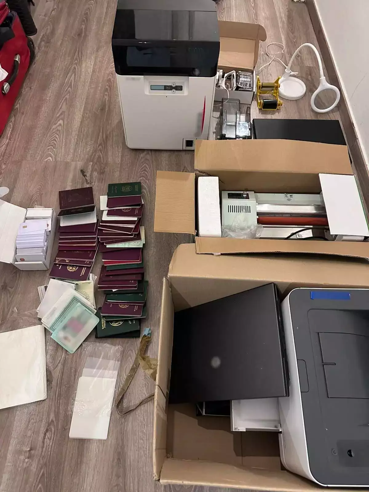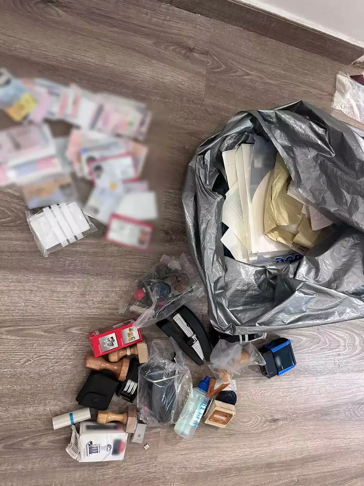 Μάλιστα σε ένα από τα σπίτια των δραστών βρέθηκε πλήρως εξοπλισμένο εργαστήριο που έφτιαχνε πλαστά έγγραφα, ενώ παράλληλα βρέθηκαν και κατασχέθηκαν: