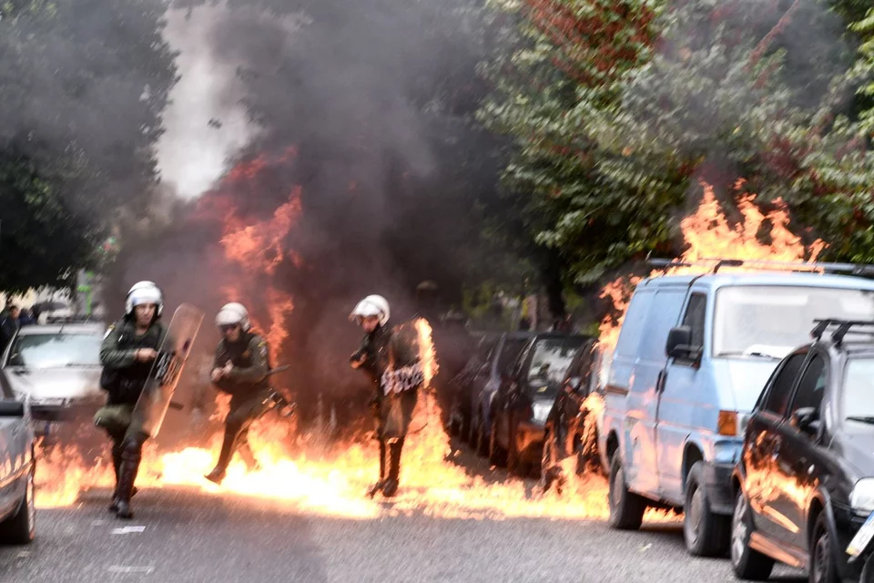 Οι συγκεντρωμένοι πέταξαν βόμβες μολότοφ στα ΜΑΤ και οι αστυνομικοί έκαναν χρήση χημικών.