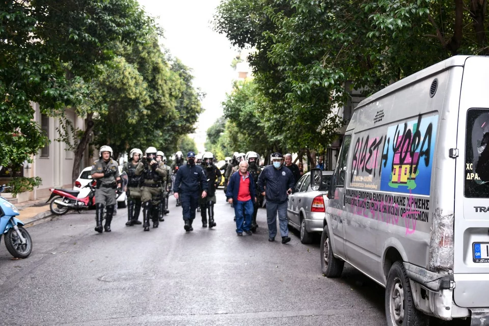 Οι περίπου 600 συγκεντρωμένοι αφού έσπασαν σύμφωνα με πληροφορίες το αυτοκίνητο του 53ρονου παιδοβιαστή και μαστροπού νεοδημοκράτη, Ηλία Μίχου, ο οποίος είναι προφυλακισμένος στη συνέχεια συγκρούστηκαν με διμοιρία των ΜΑΤ.