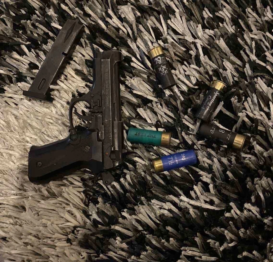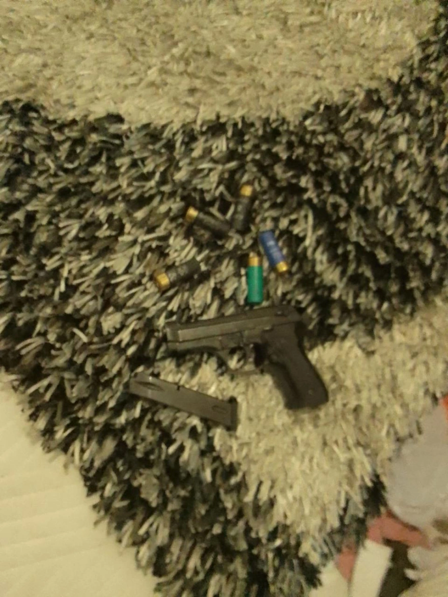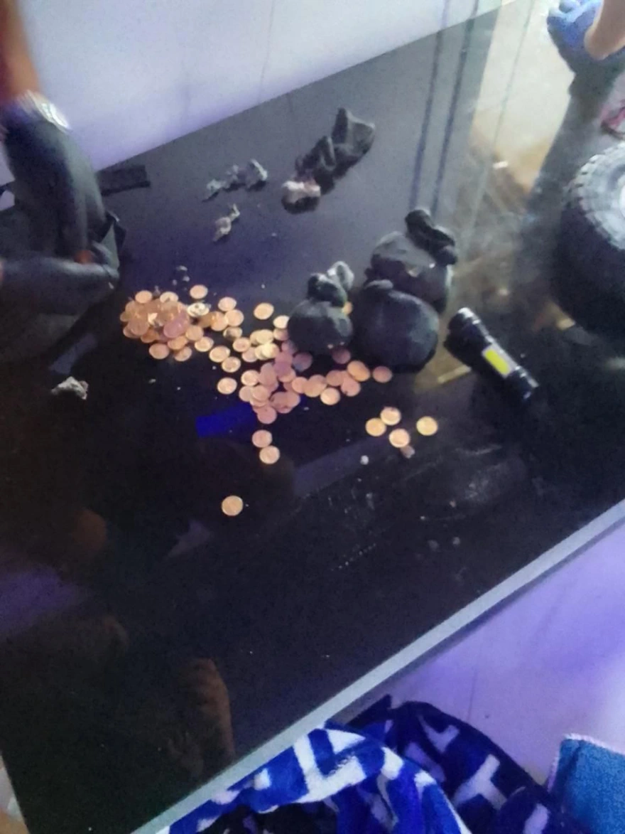 Όπως φαίνεται και στις φωτογραφίες, οι αστυνομικοί έχουν εντοπίσει πλήθος όπλων και σφαιρών καθώς και μεγάλο αριθμό χρυσών λιρών.