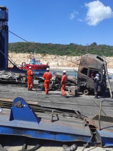Τα σωστικά συνεργεία, κατάφεραν σήμερα Δευτέρα 14 Μαρτίου, να απομακρύνουν άλλα έξι φορτηγά από το καμένο πλοίο «Euroferry Olympia».