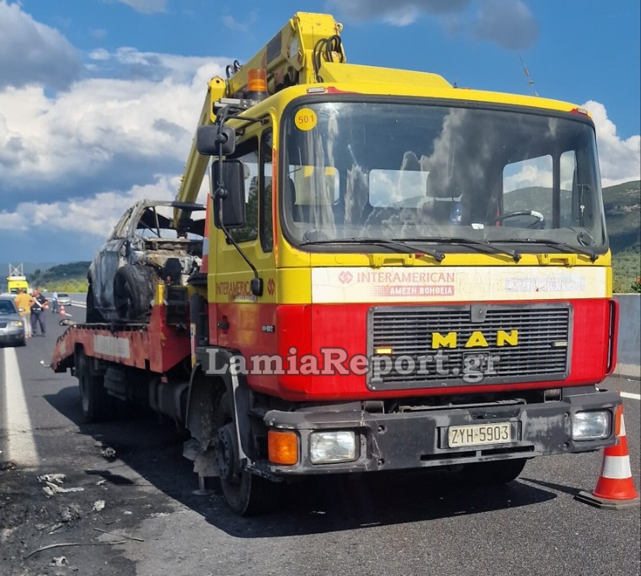 Ένα όχημα τυλίχθηκε στις φλόγες ενώ κινούνταν στην εθνική οδό Λαμίας – Θεσσαλονίκης, με τους δυο επιβαίνοντες να προλαβαίνουν να απομακρυνθούν εγκαίρως από αυτό.