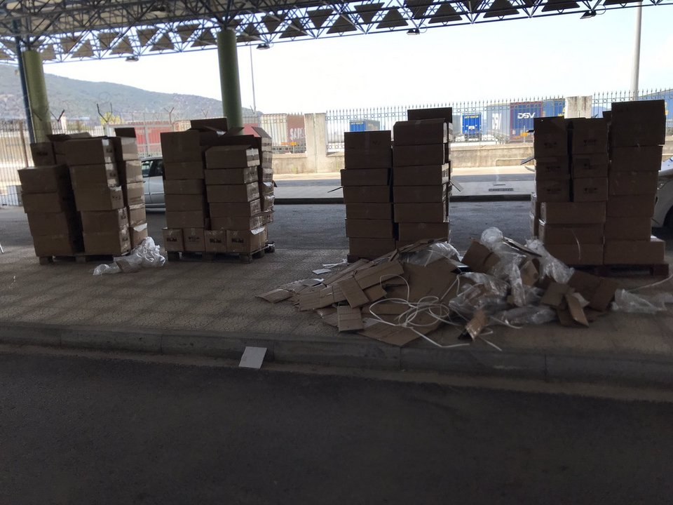 Κατά τον έλεγχο διαπιστώθηκε ότι ο οδηγός έφερε ελλιπή δελτία αποστολής διεθνών μεταφορών και νόμιμων συνοδευτικών εγγράφων καθώς και ότι πρόκειται για παραποιημένα απομιμητικά προϊόντα.