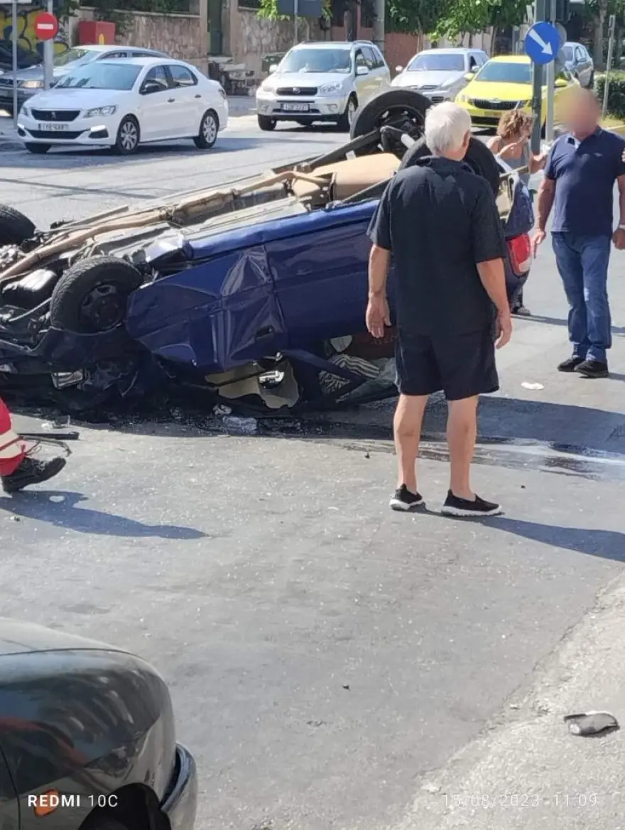 Από τη σφοδρή σύγκρουση, το ένα ΙΧ αναποδογύρισε. Ο οδηγός του απεγκλωβίστηκε με τη βοήθεια του κόσμου και μεταφέρθηκε τραυματισμένος με ασθενοφόρο στο νοσοκομείο.
