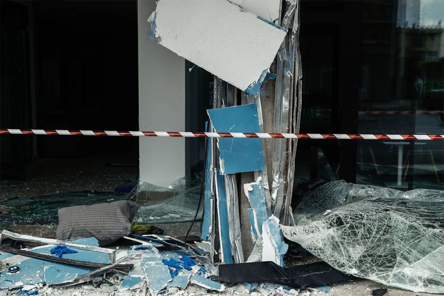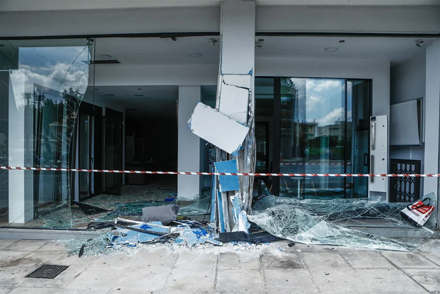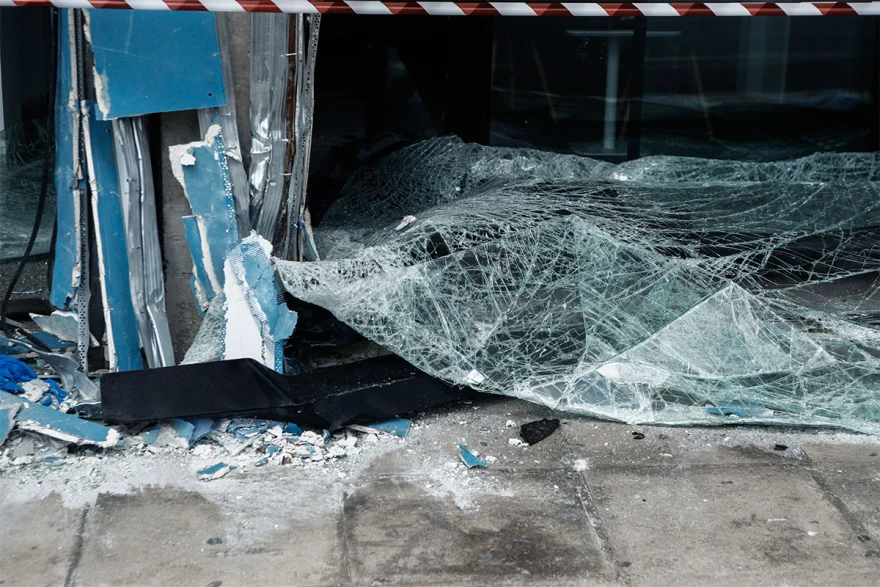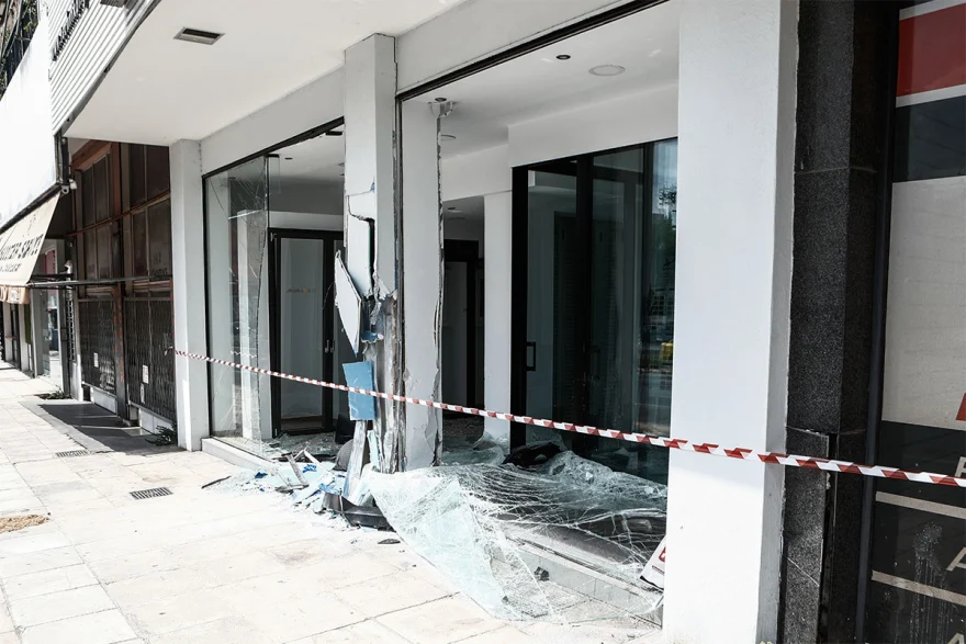 Το αυτοκίνητο υπέστη μεγάλη ζημιά, ενώ η τζαμαρία του μαγαζιού διαλύθηκε.