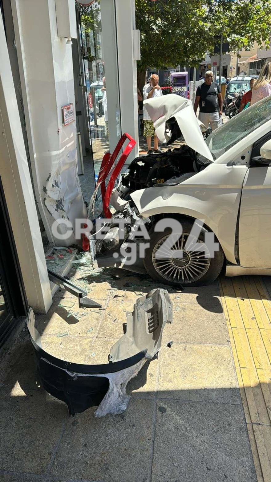 Αυτοκίνητο «καρφώθηκε» σε τζαμαρία καταστήματος στο Ηράκλειο της Κρήτης.