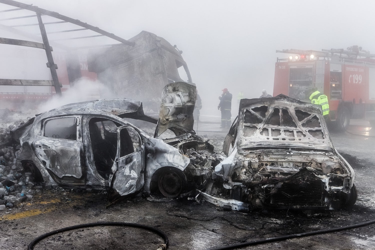 Το φορτηγό καιγόταν ακριβώς μπροστά από τα διόδια και δεν βλέπαμε τι καιγόταν, ακούγαμε κρότους, εκρήξεις και λέγαμε τι είναι. Δεν μπορούσαμε να πλησιάσουμε. (…) Από την ομίχλη, δεν βλέπαμε φλόγα».