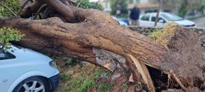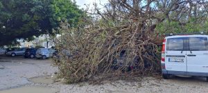 Άμεσα, στο σημείο έσπευσαν δυνάμεις της Πυροσβεστικής και συνεργεία του Δήμου Ρόδου, προκειμένου να απομακρύνουν τον κορμό και να απελευθερώσουν τα οχήματα που είχαν παγιδευτεί κάτω από τα κλαδιά.