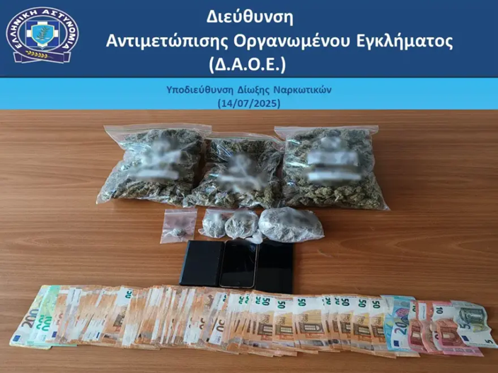 Σε έρευνα που έγινε στη συνέχεια από την Υποδιεύθυνση Δίωξη Ναρκωτικών της Διεύθυνσης Δίωξης Αντιμετώπισης Οργανωμένου Εγκλήματος στο σπίτι του, βρέθηκαν επιπλέον 900 γραμμάρια ακατέργαστης κάνναβης, ζυγαριά ακριβείας και 5.000 ευρώ.
