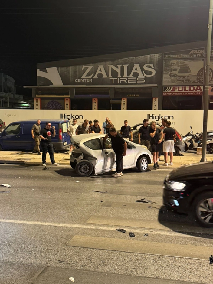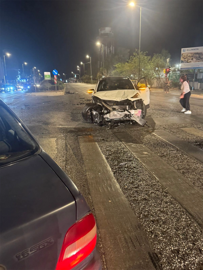 Από τη σύγκρουση το ένα όχημα πέρασε από τη διασταύρωση, στο ύψος της πρώην αμερικανικής βάσης, στο αντίθετο ρεύμα κυκλοφορίας και συγκρούστηκε διαδοχικά με το τρίτο ΙΧ και το ταξί.