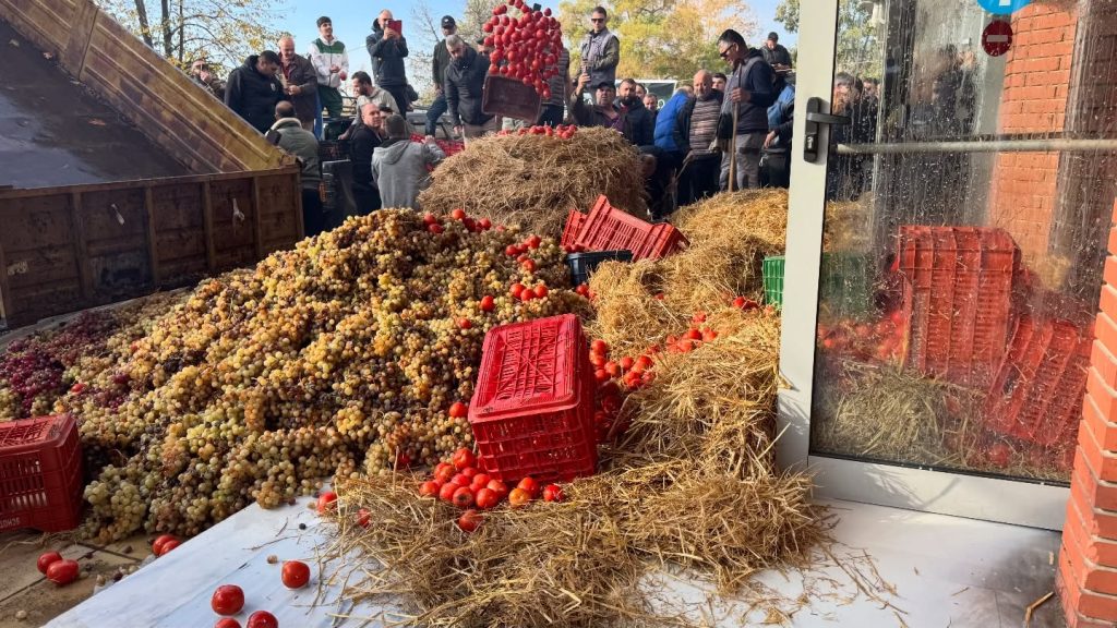 Καβάλα: Αγρότες καίνε άχυρα, πετάνε ντομάτες και σταφύλια και ρίχνουν γάλα στην Εφορία
