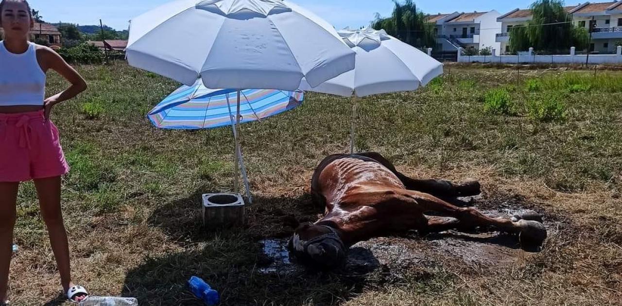 Το άλογο τελικά πέθανε, παρά τις προσπάθειες πολλών να του δώσουν νερό και να το τοποθετήσουν κάτω από σκιά με τη βοήθεια ομπρέλας.