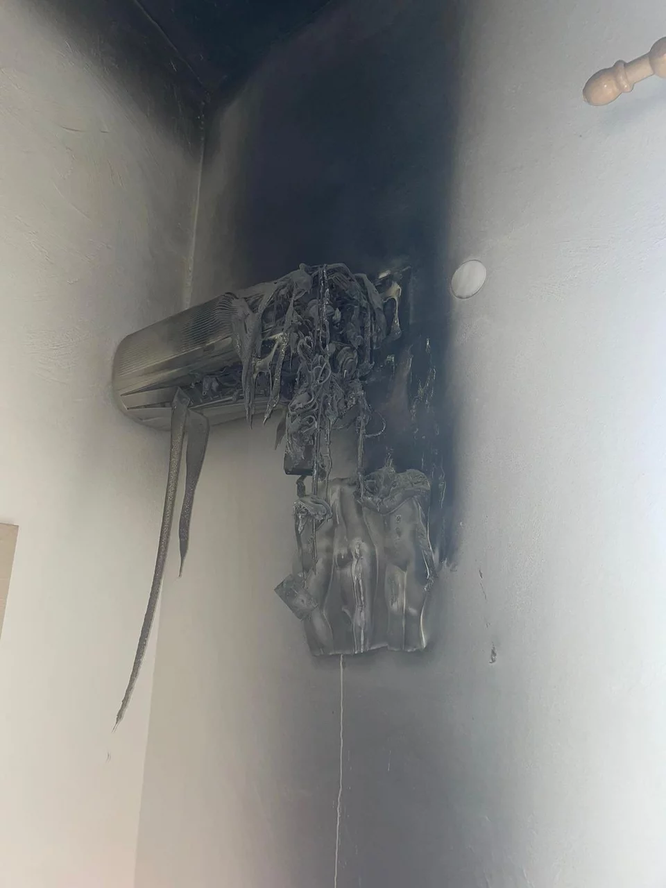 «Κοίταξα ψηλά και είδα ότι το κλιματιστικό είχε πιάσει φωτιά. Σηκωθήκαμε από τα κρεβάτια μας και τρέξαμε προς την πόρτα. Πάνω στον πανικό μου, μάλιστα, δεν μπορούσαν να βρω το κλειδί ενώ παντού έπεφταν σπίθες από τη φωτιά», αναφέρει.