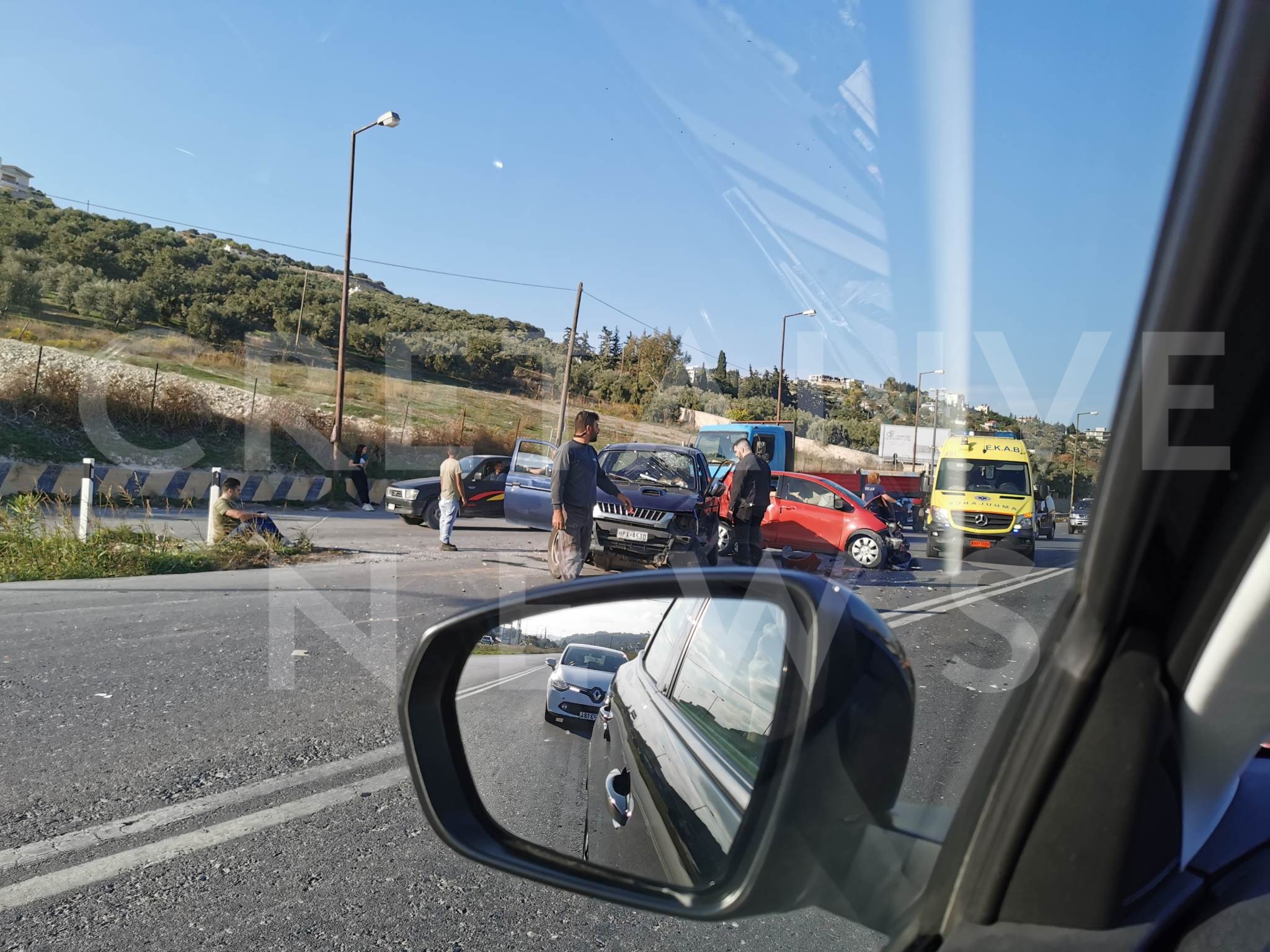 Καραμπόλα τεσσάρων οχημάτων σημειώθηκε λίγο πριν τις 15:00 το μεσημέρι, στο 5ο χιλιόμετρο της εθνικής οδού Ηρακλείου – Μοιρών.