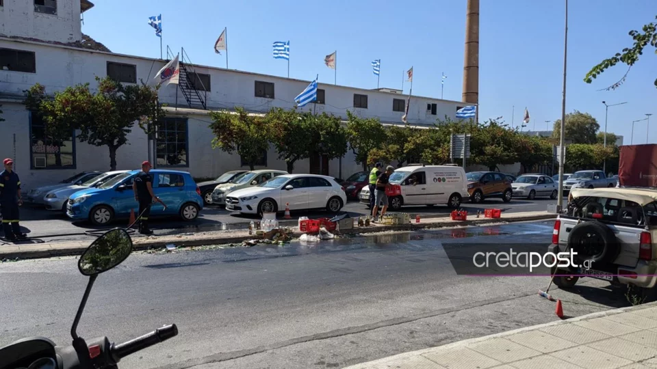 Σύμφωνα με πληροφορίες του cretapost, όλα συνέβησαν σήμερα αργά το μεσημέρι όταν από ένα φορτηγό που κινούνταν στην λεωφόρο Εθνικής Αντιστάσεως, κοντά στο λιμάνι του Ηρακλείου, έπεσαν κιβώτια που περιείχαν μπουκάλια με αλκοόλ και αναψυκτικά.