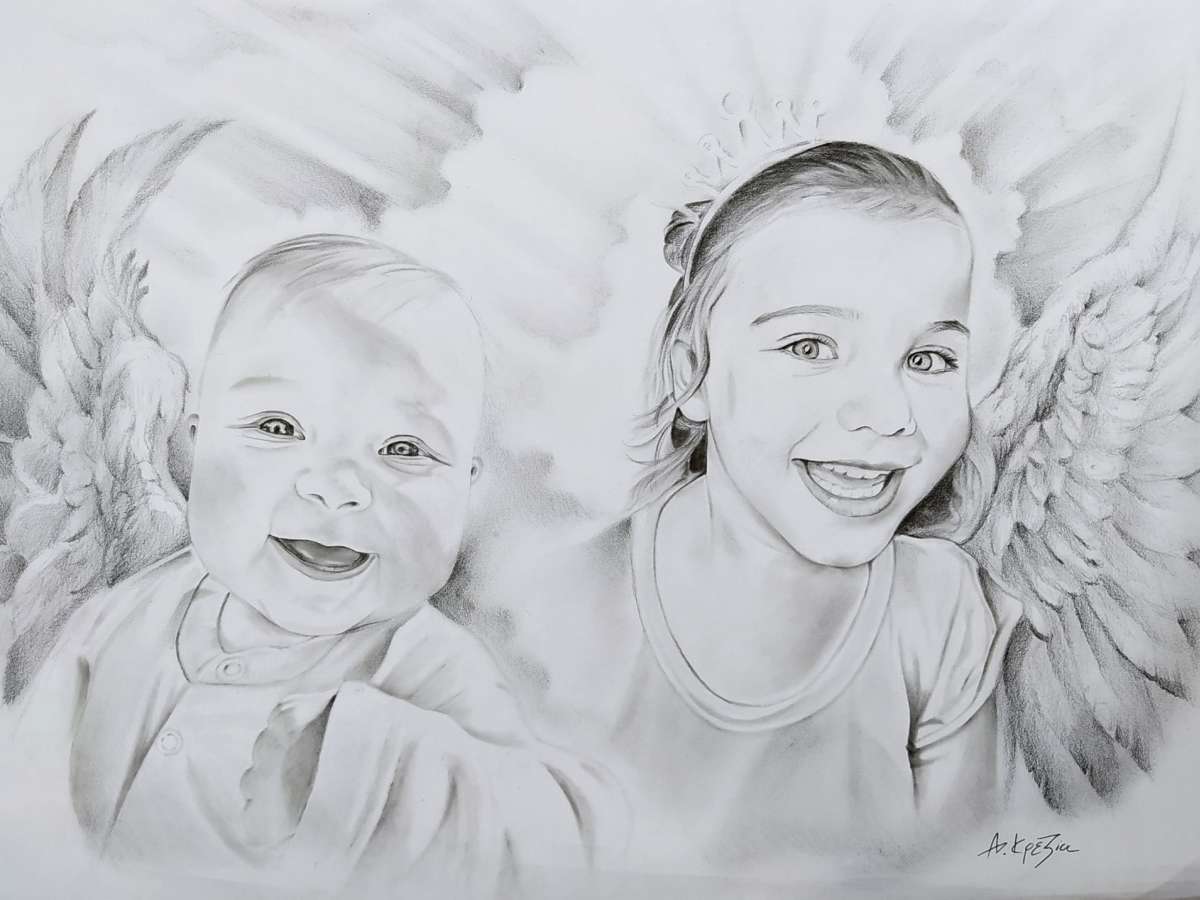 Η Αλεξάνδρα Κρεζία είναι ζωγράφος – χαράκτρια, η οποία είχε συνεργαστεί με τη Ρούλα Πισπιρίγκου, η οποία της είχε ζητήσει να φτιάξει τα πορτρέτα των δύο παιδιών.
