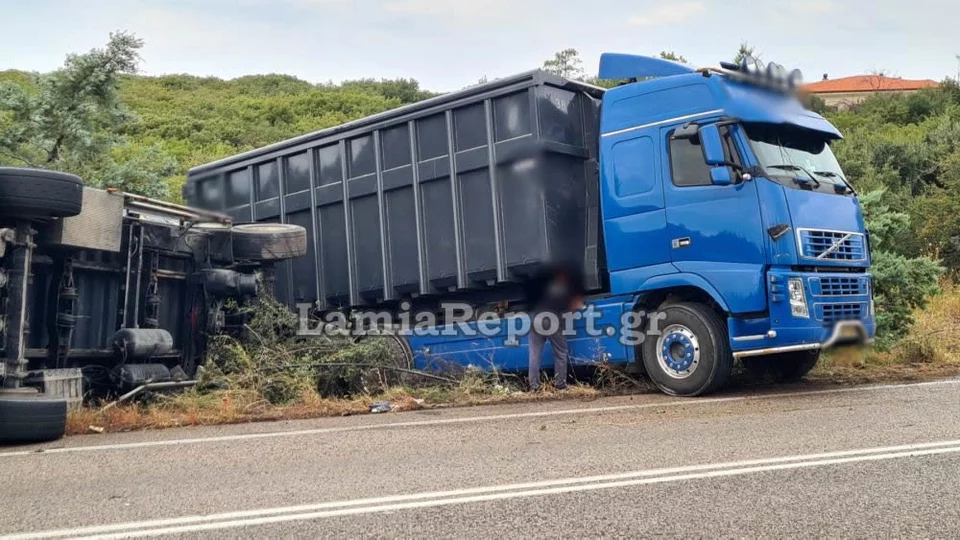Τροχαίο ατύχημα σημειώθηκε σήμερα, Τρίτη, στη Λαμία, με μία νταλίκα να εκτρέπεται εκτός δρόμου, με αποτέλεσμα να αναποδογυρίσει το συρόμενο.