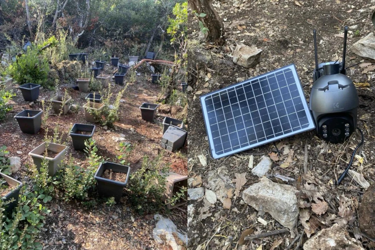 Τα δενδρύλλια ποτίζονταν με λάστιχο που ξεκινούσε από παρακείμενο ρέμα, ενώ εντός του χώρου της φυτείας οι καλλιεργητές είχαν αναγείρει αυτοσχέδιο παράπηγμα.