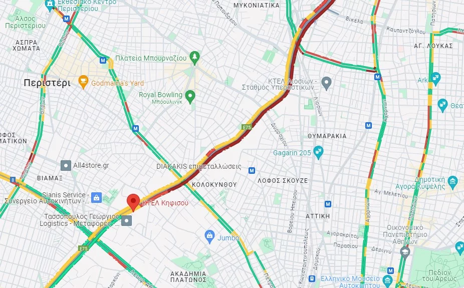 Ο χάρτης της κίνησης στις 7:30 το πρωί: