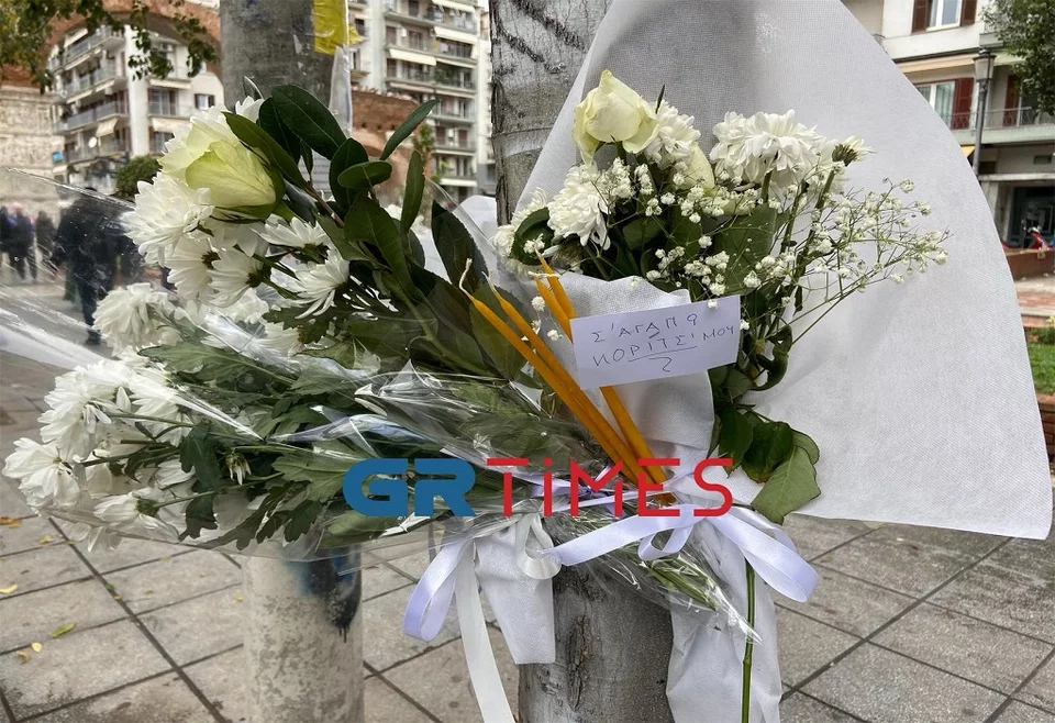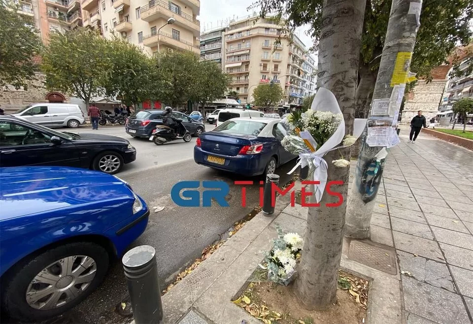Λουλούδια άφησαν το πρωί της Δευτέρας (28/11) περαστικοί και συμφοιτητές, στο σημείο, όπου η 21χρονη Εμμα παρασύρθηκε τον ασυνείδητο οδηγό στο κέντρο της Θεσσαλονίκης.