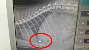 Αρχικά, η οικογένεια του ζώου πίστεψε ότι είχε παγιδευτεί κάπου και είχε τραυματιστεί λόγω της εξάντλησης και της κόλλας που τον κάλυπτε. Ωστόσο, η ακτινογραφία που υποβλήθηκε στο ζώο αποκάλυψε ότι είχε πυροβοληθεί με αεροβόλο όπλο.