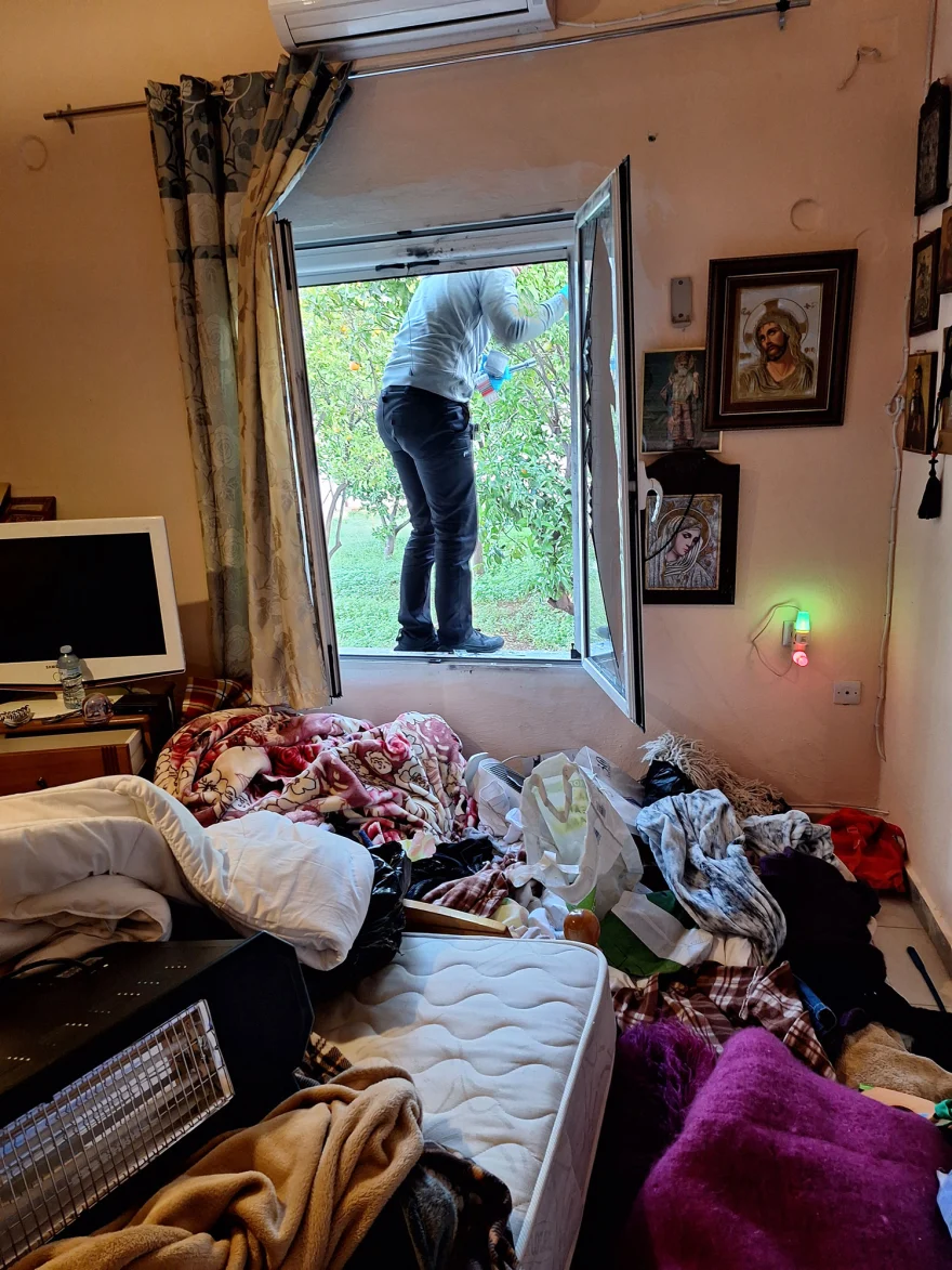 «Μπήκαν στο σπίτι μας δύο ληστές από το παράθυρο, οι οποίοι φορούσαν μάσκες στα πρόσωπά τους και κρατώντας στα χέρια τους ένα μαχαίρι κι ένα κατσαβίδι, ακινητοποίησαν εμένα και την ηλικιωμένη μητέρα μου την ώρα που κοιμόμασταν. Μας άρπαξαν από το λαιμό και μας φώναζαν “Δώστε μας τα χρήματα γιατί θα σας σκοτώσουμε”. Μας ξυλοκόπησαν και τις δύο ενώ της μητέρας μου της έκλεισαν το στόμα με ένα μαξιλάρι. Με απειλούσαν, ρήμαξαν το σπίτι μου, ανακάτεψαν τα πάντα και ανακάλυψαν ότι είχα 15.000 ευρώ κρυμμένα στην ντουλάπα μου και στο κομοδίνο μου. Με τα χρήματα αυτά έπρεπε να πληρώσω την ασφάλειά μου γιατί είμαι καρκινοπαθής. Πήραν τα χρήματα κι εξαφανίστηκαν» λέει η Δέσποινα Μιχαηλίδου.