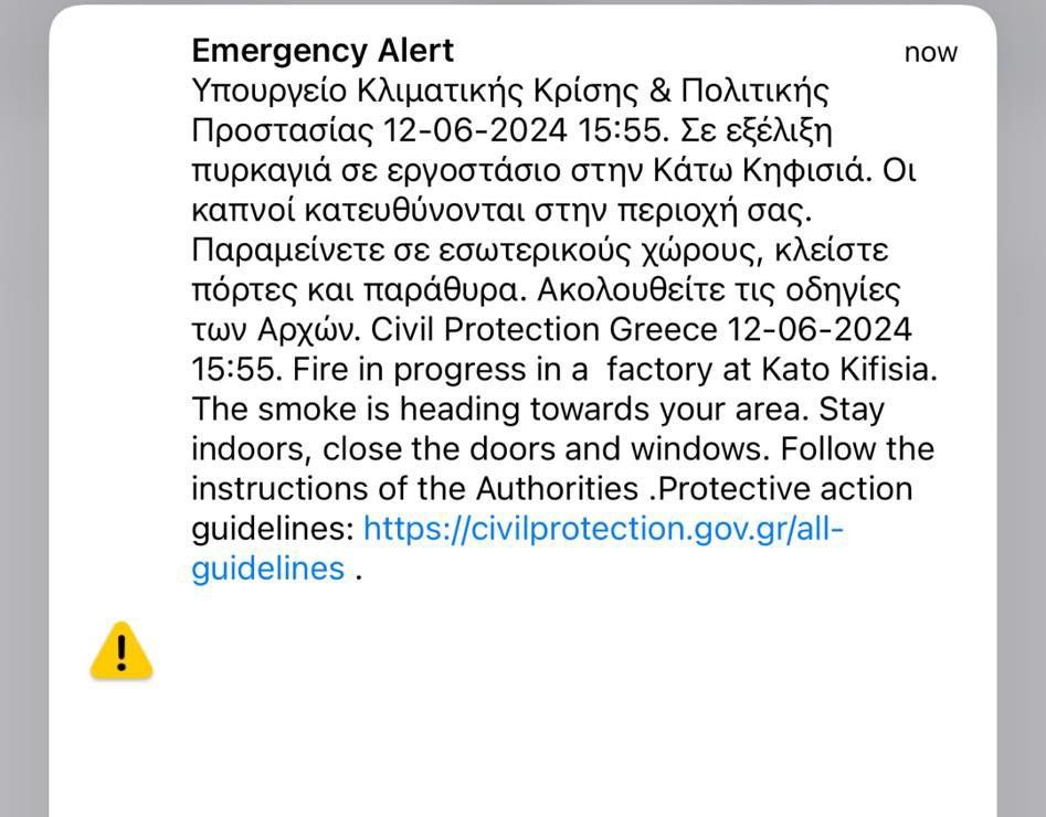 Πριν από λίγο απεστάλη μήνυμα 112 στους κατοίκους της περιοχής