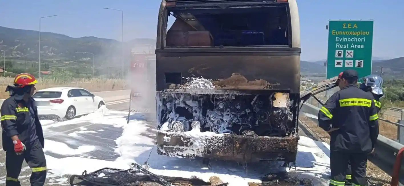 Στις φλόγες τυλίχθηκε λεωφορείο του ΚΤΕΛ Παξών που κινούνταν στην Ιόνια Οδό στο ύψος του ΣΕΑ Ευηνοχωρίου στο ρεύμα προς Πάτρα, λίγο μετά τη 1 το μεσημέρι.
