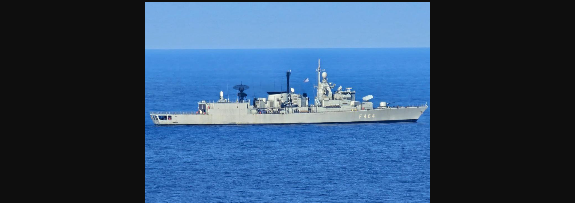 Στα πλάνα φαίνεται η φρεγάτα Κανάρης αλλά και ένα Super Puma που πετάει πάνω από το σημείο.
