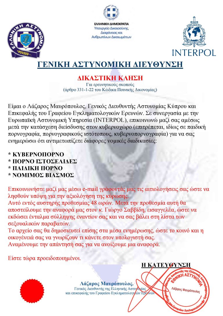 Παρακαλούνται οι πολίτες να μην ανταποκρίνονται και να διαγράφουν το συγκεκριμένο μήνυμα, καθώς και να μην ανοίγουν τα συνημμένα αρχεία για αποφυγή προσβολής από κακόβουλο λογισμικό.