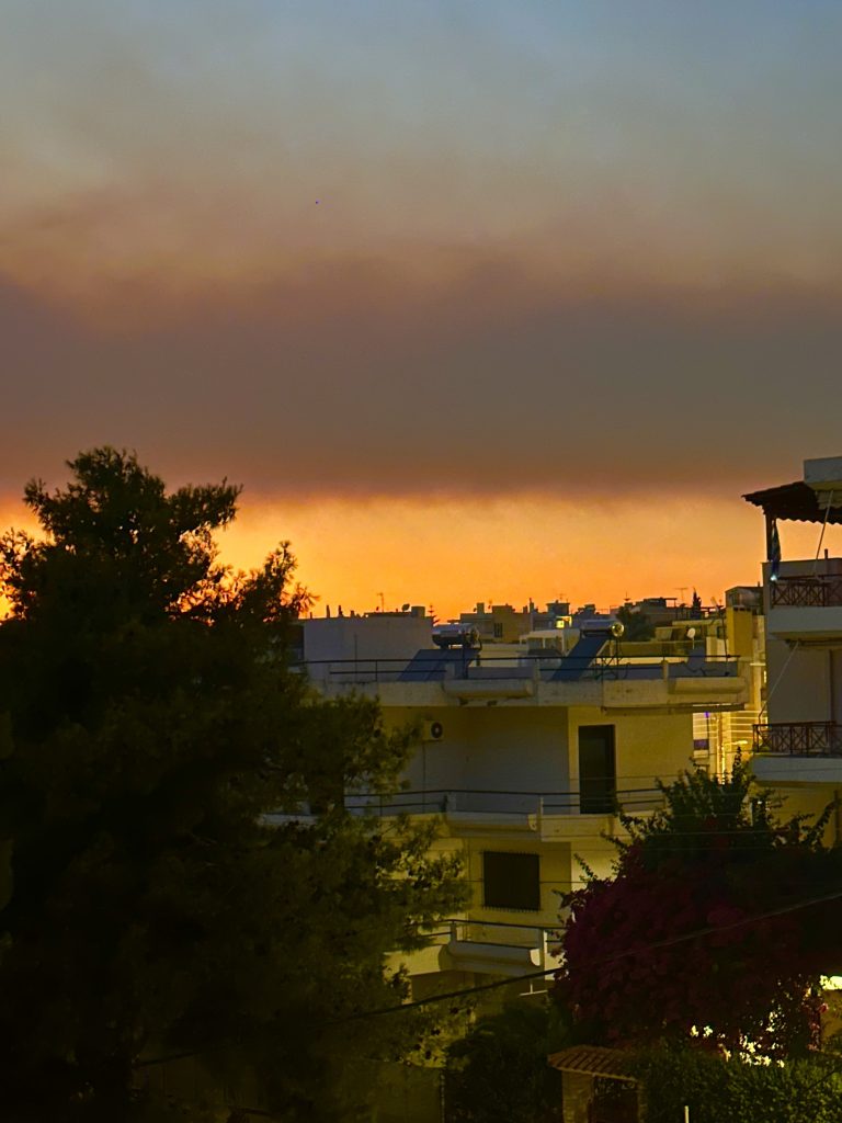 Ο πυκνός καπνός έχει σκεπάσει όλη την Αθήνα.